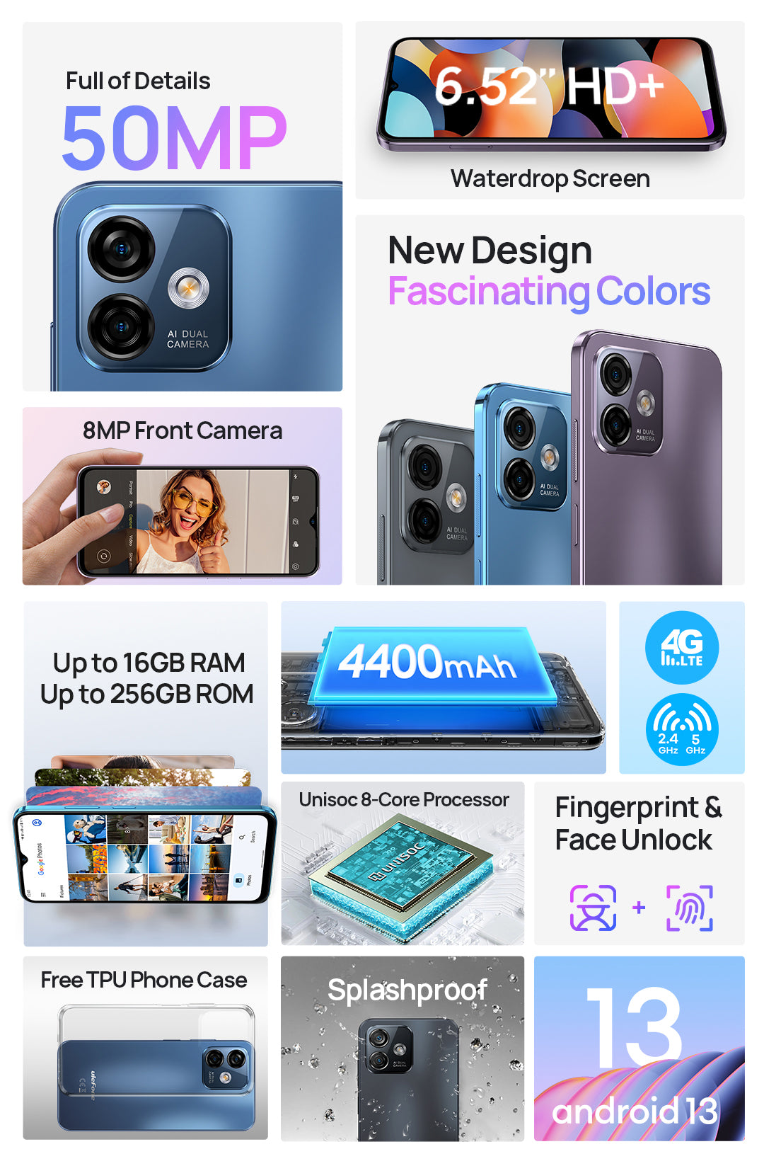 4400mAh Battery | 6.52" Waterdrop Screen | 50MP Dual Rear Camera | Android 13