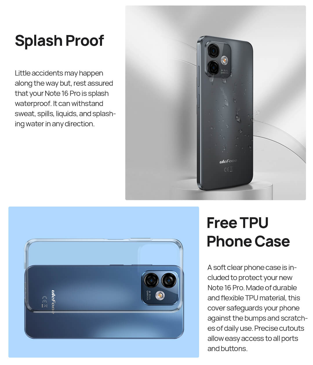 - The data on the page are theoretical values from Ulefone lab based on specific test environment (see details at specific description). In actual use, there may be slight differences due to product differences, software versions, use conditions and environmental factors, so please refer to actual situation as final.